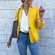 Vibrant yellow blazer with deep sturdy pockets with flap over pockets